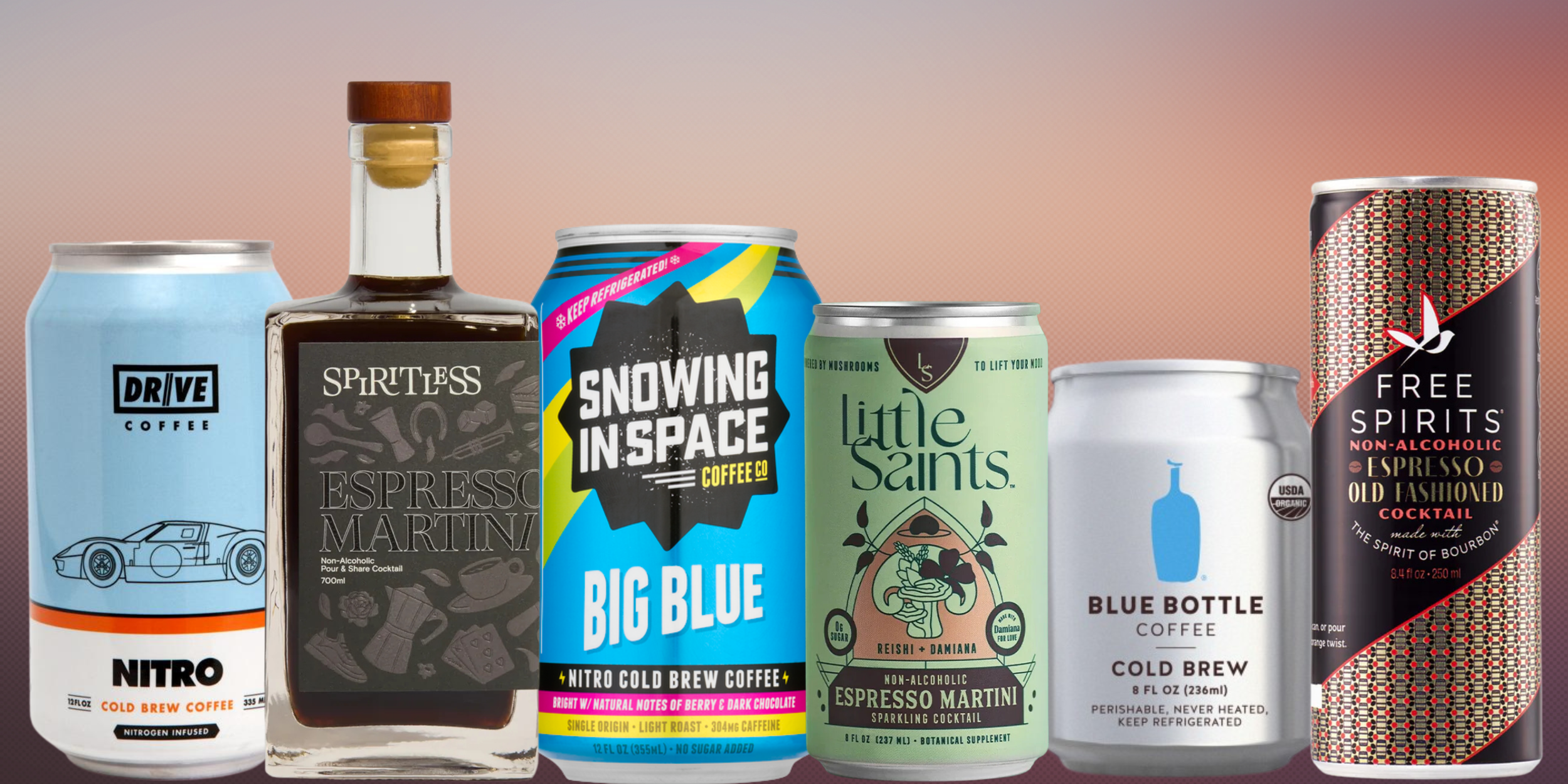 Coffee-based Beverages Abracadabra CoffeeAll the Bitter Cherry Coffee BlastAtomic CoffeeAtomo!BdB CoffeeBlue Bottle CoffeeBoss CoffeeBulletproof CoffeecaffeSURCalifia FarmsChameleon Cold-BrewCheeky Cocktails Espresso SyrupCoffee Over CardioCold BrewtusCommunity CoffeeCouplet CoffeeCultivoDrive CoffeeFree Spirits Espresso Old FashionedGood Vibes SocietyGrady's Cold BrewHigh Brew Coffee RoastersIllyKITU Super CoffeeKoiaLa Colombe Limitless Cold Brew Little Saints Espresso MartiniLoco CocoLucky Jack Cold BrewLyre’s Coffee OriginaleMade CoffeeMadrinas CoffeeMeditate / TuluaMocktails Espresso MartiniMojo Cold BrewMy Favorite CoffeeNitro Beverage Co.Nitro Joe'sNurange CoffeeOazaOMNI The Pathfinder Espresso TonicPeet's Coffeepivot coldbrewPop & BottleProjo CoffeeRau Morning BuzzREBBL Riff Cold BrewRise Brewing Co.Sail Away Coffee Co.SAYSO Espresso MartiniSeaworth CoffeeSecret Squirrel Cold BrewSir Owlverick'sSnowing in SpaceSpiritless Espresso MartiniSpritziSt. Agrestis Phony Espresso NegroniStarbucksStation Cold BrewStoK Cold BrewStrong Coffee CompanyTrident CoffeeTUYYOUpruit Cold BrewWandering Bear Coffee Back to NA Bevs